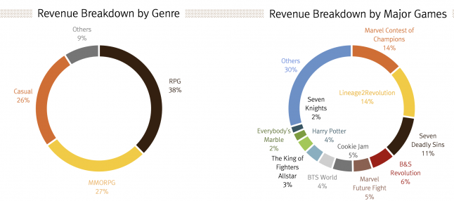 Netmarble’s reporting also includes a game-by-game and genre-by-genre breakdown of revenue generated this quarter. The full graph from its earnings presentation can be found just below, but at a glance Marvel Contest of Champions, from Netmarble subsidiary Kabam, brought in the most revenue for a single title at 14 percent, followed by Lineage 2 Revolution at 14 percent and Seven Deadly Sins at 11 percent.