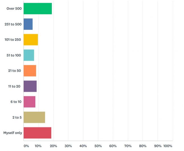 So what do we find here? In the 2018 report (from Gamasutra readers and attendees of GDC 2017), around 25 percent of developers responding came from a company of over 250 people – that’s the triple-A studios, to be sure. 9.6 percent of developers came from a studio of between 101 and 249 developers, down from 11 percent two years ago. Those companies are still big, but not necessarily triple-A. In total, at max, this would suggest that developers in the largest companies, those over 100 employees, represent 35 percent of the entire game industry. Everyone else was in smaller companies than that – in fact, companies of 5 or fewer people represented 33 percent of respondents. A full third of attendees came from the smallest companies.