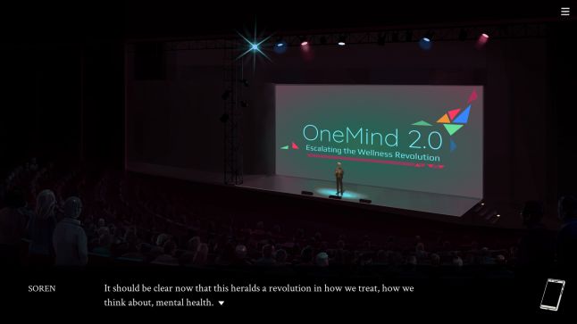 My first concern was simply to tell a good, relatable story. To me that’s more fundamental than posing any given question specifically, because to me, the questions come naturally as a result of having a real story. Hopefully, the question of what Evelyn should do doesn’t feel theoretical or abstract because of the people she’s spoken with and the therapy clients she’s met. Her decision is tied into all of these other things— systems, society, individual human beings. Plus, even though the game only asks you what Evelyn herself should do, she’s just one person. There are larger questions lurking in the background, like what our society’s relationship to technology should be versus what it is now. Things like that.